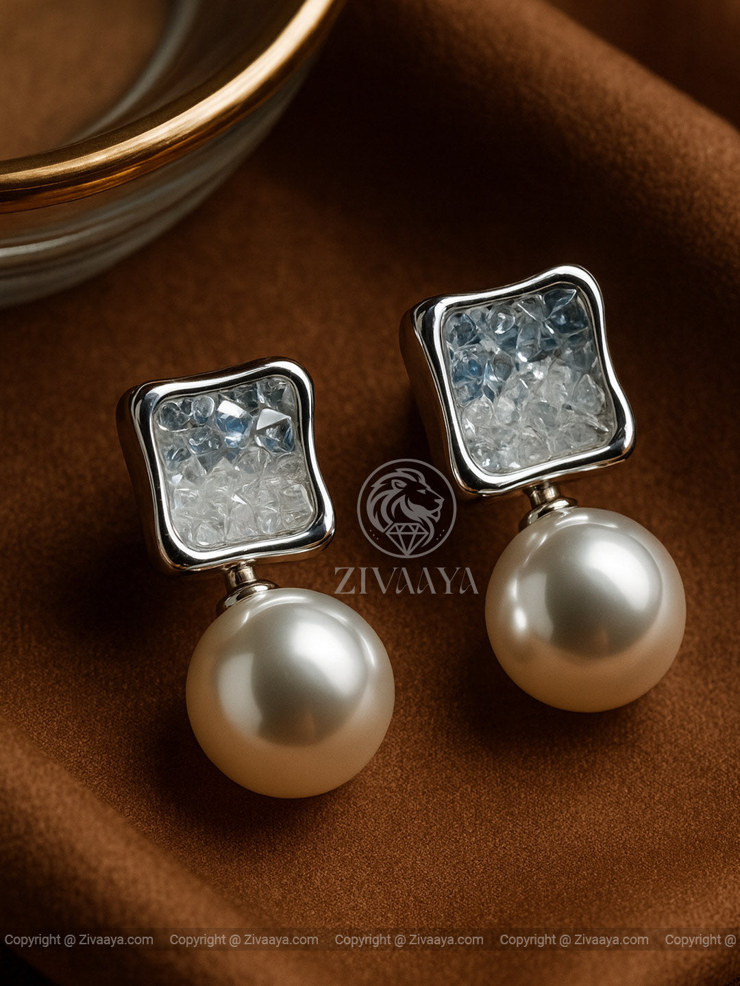 Moonlit Glow Pearl Drop Earrings – Silver Shine