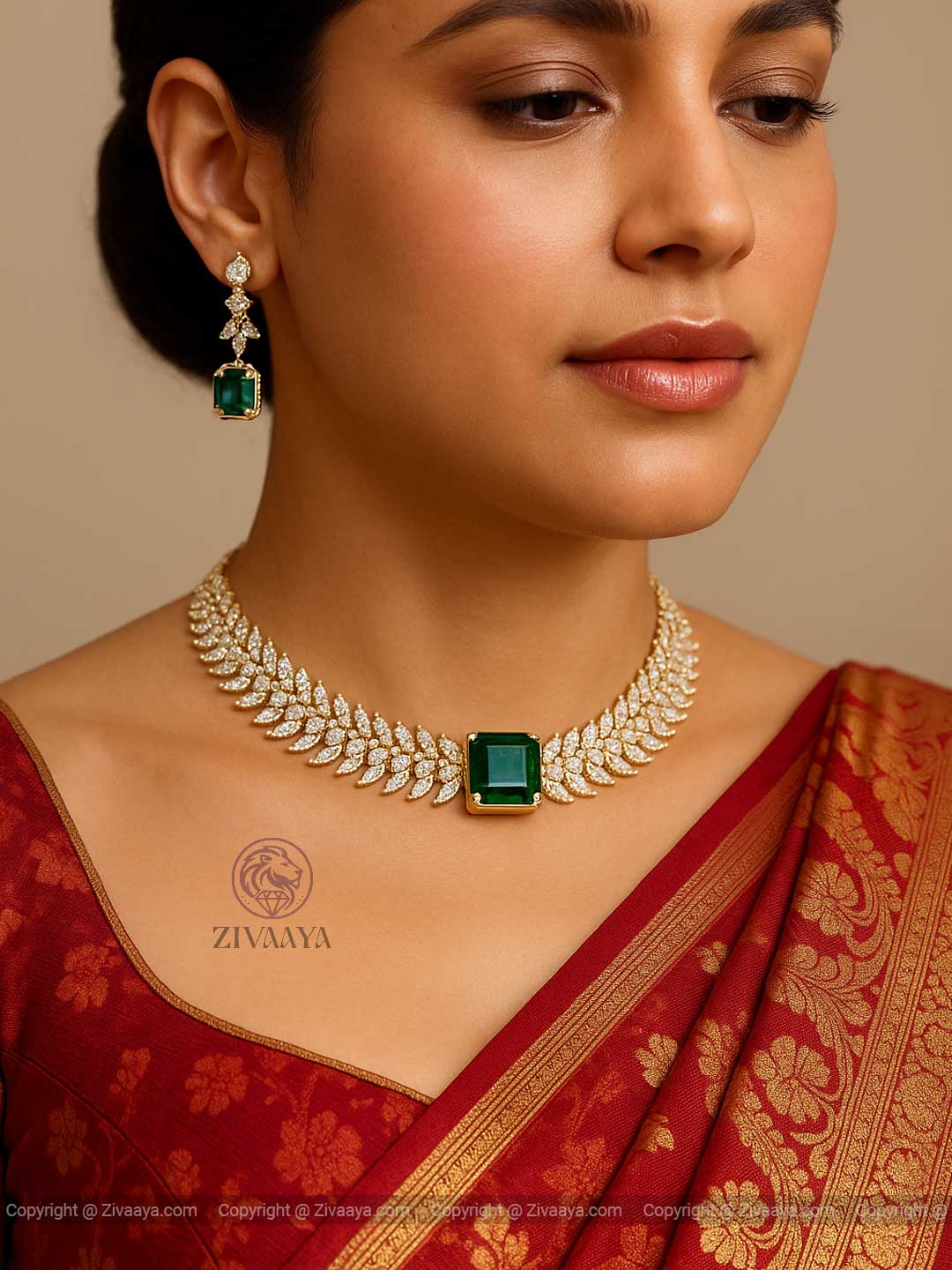 Elevate your elegance with the Emerald Grace Choker Set — featuring a royal green crystal...