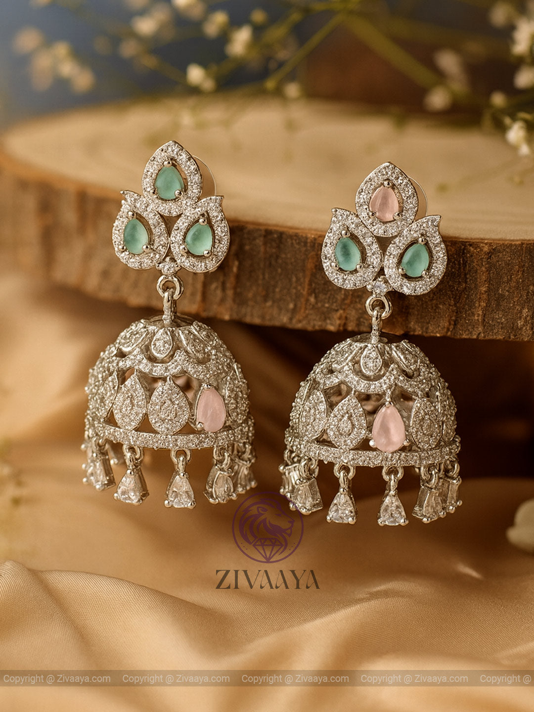 Blush Elegance Crystal Drop Earrings – Silver Finish